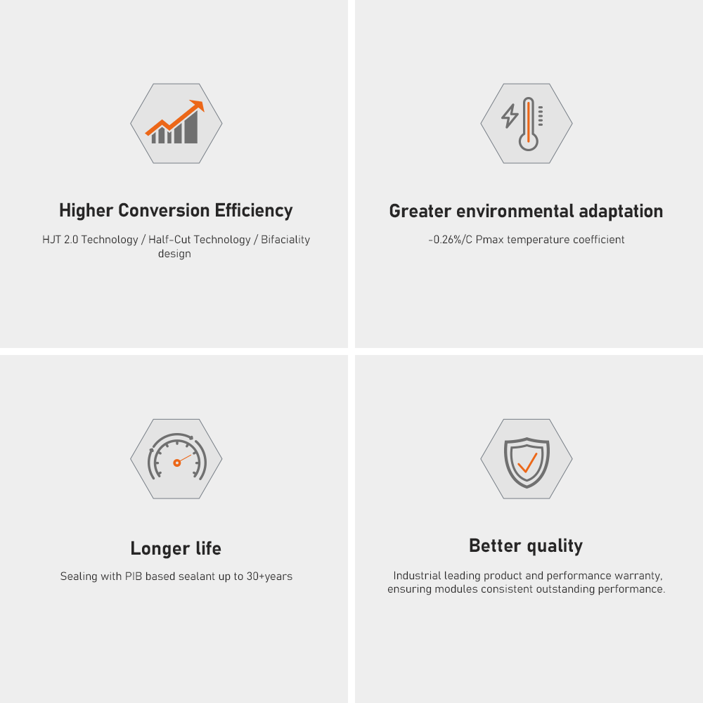 1. High power up to 670W,Up to 21.6% module efficiency with high density interconnect technology